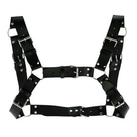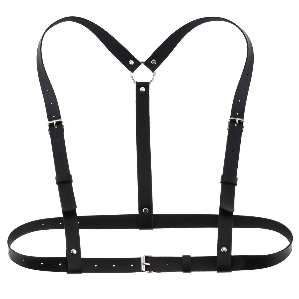 Ce harnais gothique en simili cuir noir incarne l’esthétique darkwear contemporaine : brut, ajustable, puissant.