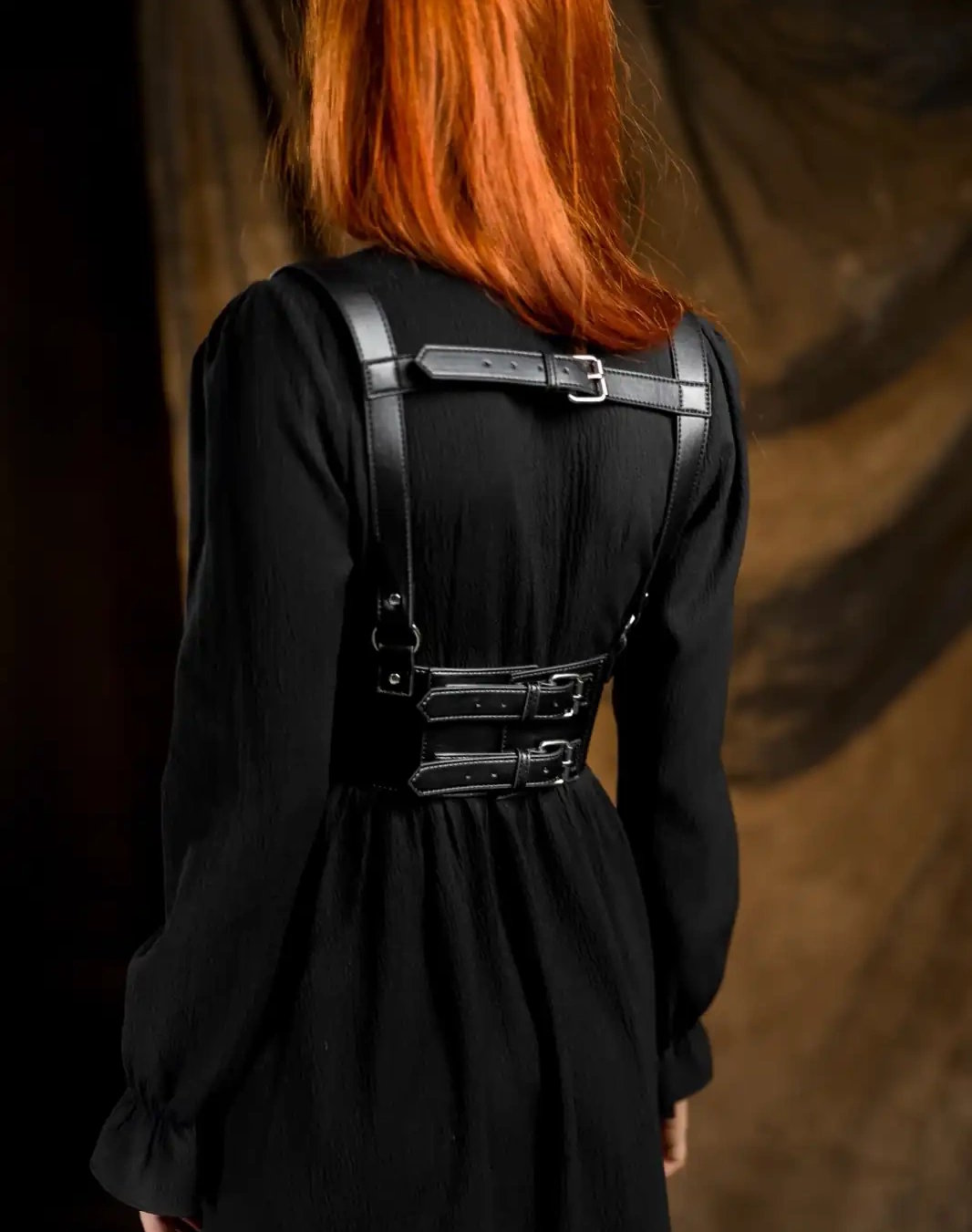 Nos harnais gothiques, quant à eux, se portent seuls ou par-dessus une tenue, pour créer un effet visuel sculptural, entre esthétisme bondage et attitude punk.