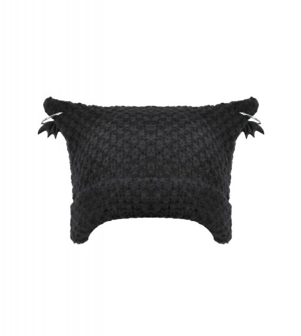 Les ailes stylisées sur les côtés rappellent la créature nocturne, libre et indomptable. Porté avec une jupe utilitaire, un pantalon cargo ou un look full black, ce bonnet devient un manifeste visuel, entre scène underground et rue nocturne.