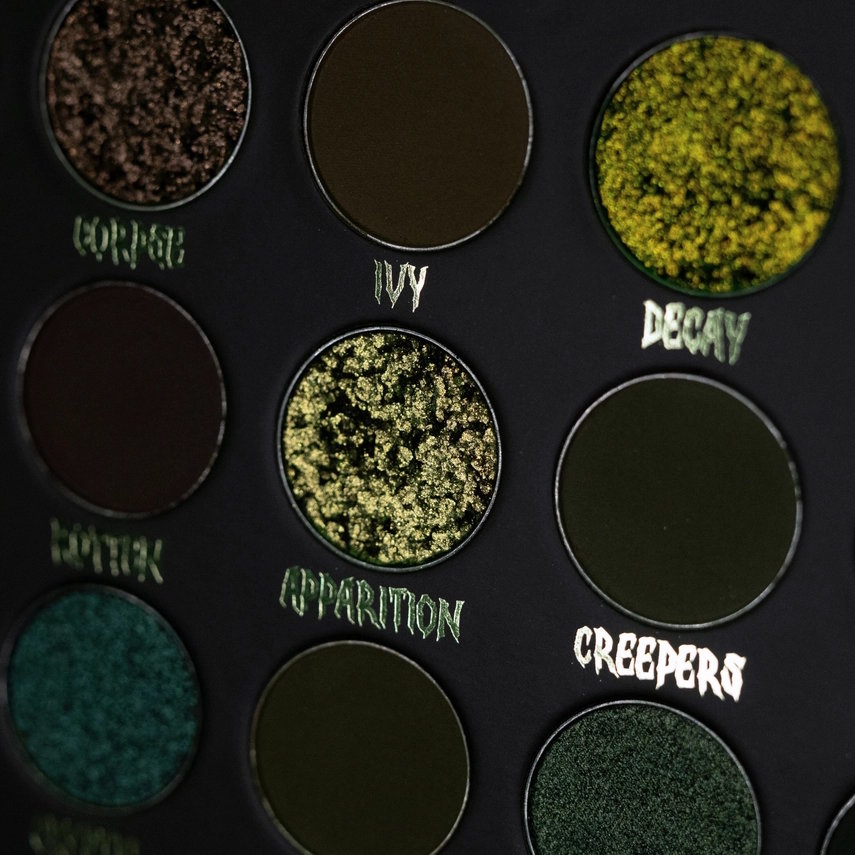 La palette Cryptic de Jolie Beauty rassemble 28 teintes inspirées par les cimetières embrumés, les cryptes antiques et les sous-bois hantés.