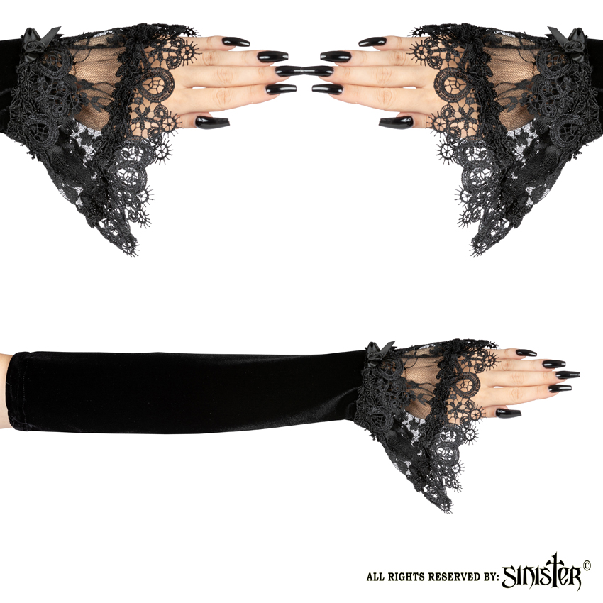 Mitaines gothiques SINISTER en velours noir |