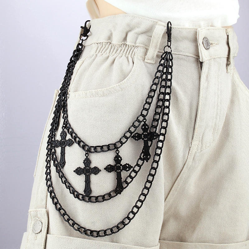 Portée sur un pantalon noir, un jean sombre ou une pièce gothique à sangles, cette chaîne devient un marqueur identitaire fort, entre esthétique rituelle et attitude underground.