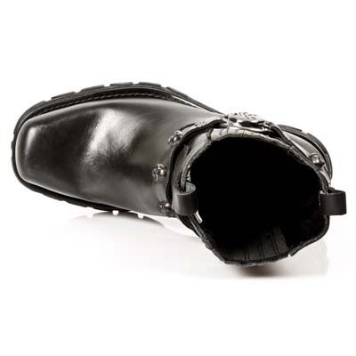 Paire de bottines hommes en cuir noir, un modèle dans la pure lignée des biker's avec la qualité de fabrication new rock