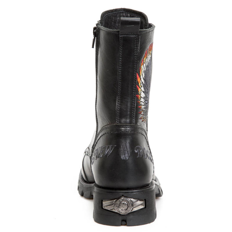 Modèle New Rock M.7645-C1 en cuir noir, facile à enfilé avec sa fermeture éclair sur le coté