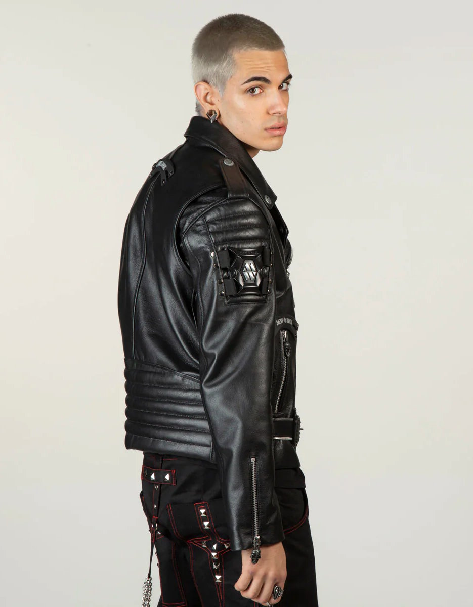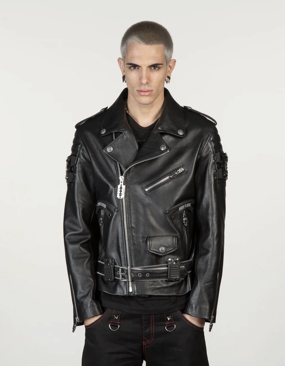 Porté avec un jean noir, un pantalon cyberpunk ou des bottes New Rock massives, ce blouson devient une pièce centrale du vestiaire alternatif masculin.