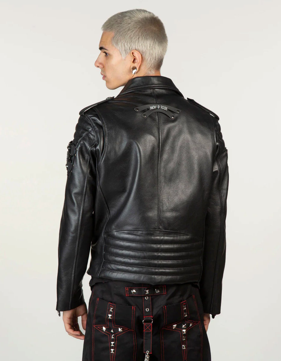 Le blouson cuir premium New Rock W-NRLMJ089-S1 appartient à la prestigieuse Clothing Collection de la marque. Fidèle à l’ADN New Rock, il mêle puissance visuelle, détails métalliques et inspiration rock industrielle.