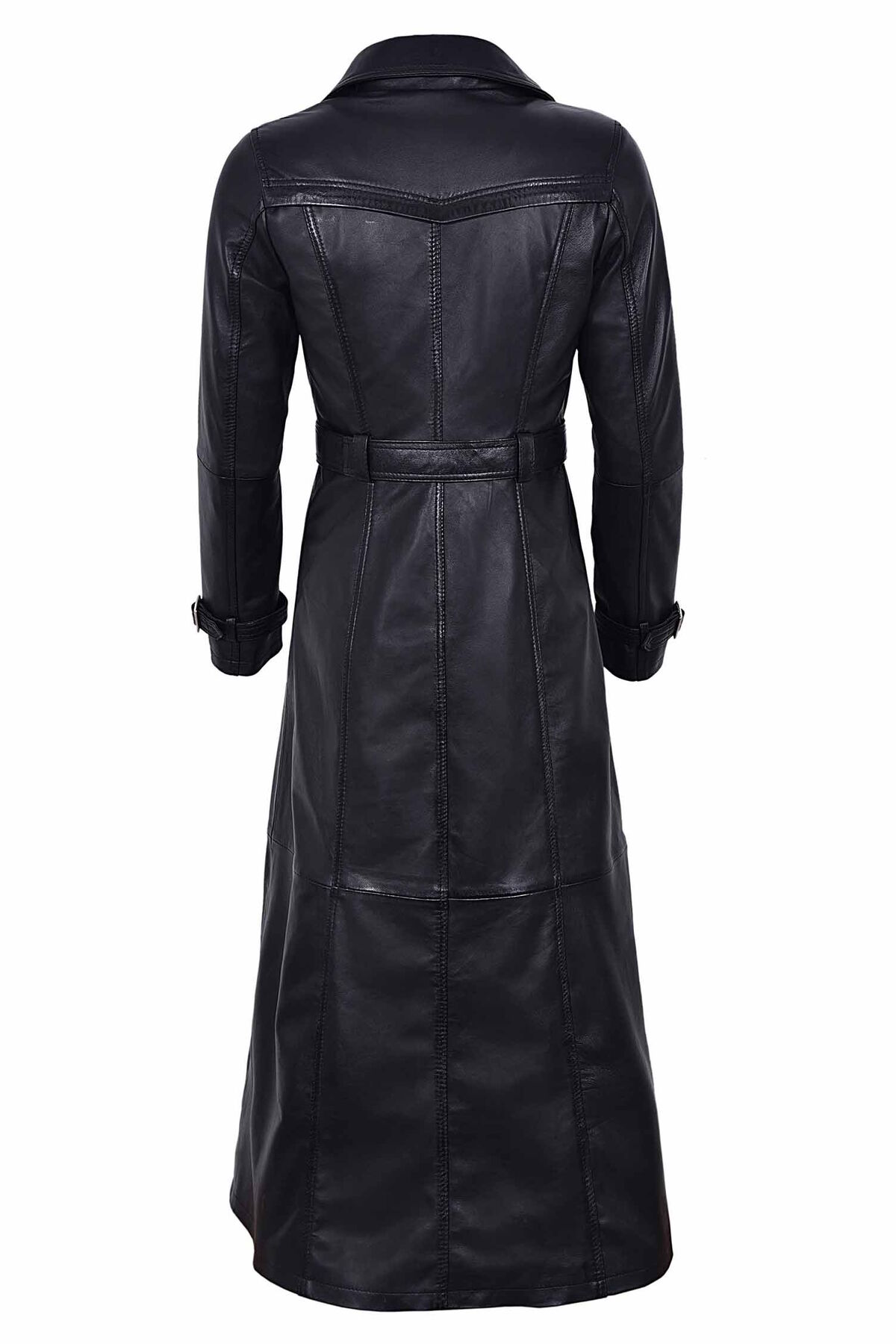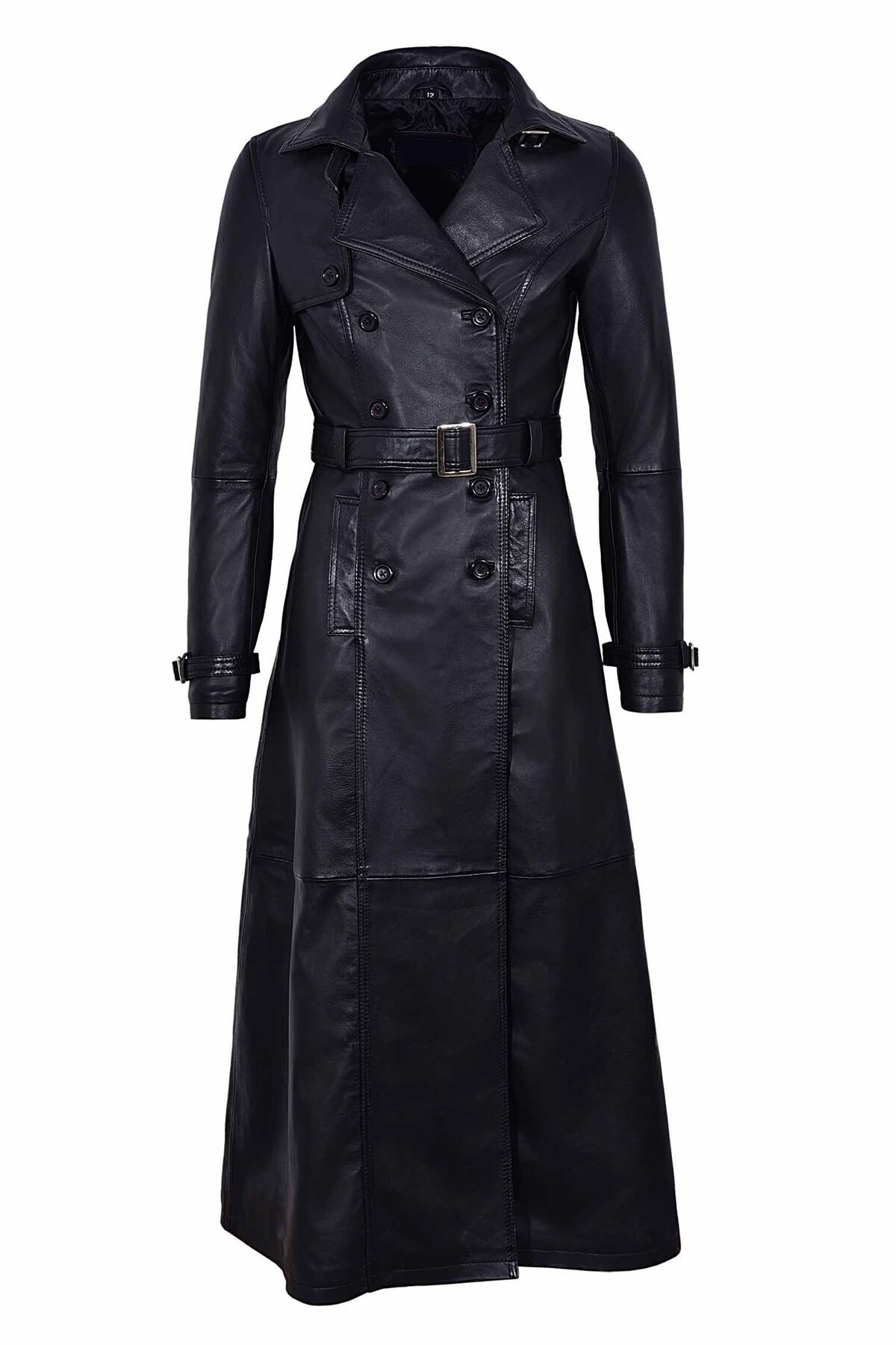 Sa coupe longue et cintrée souligne la silhouette, tandis que le double boutonnage et la ceinture assortie ajoutent une touche militaire et aristocratique.