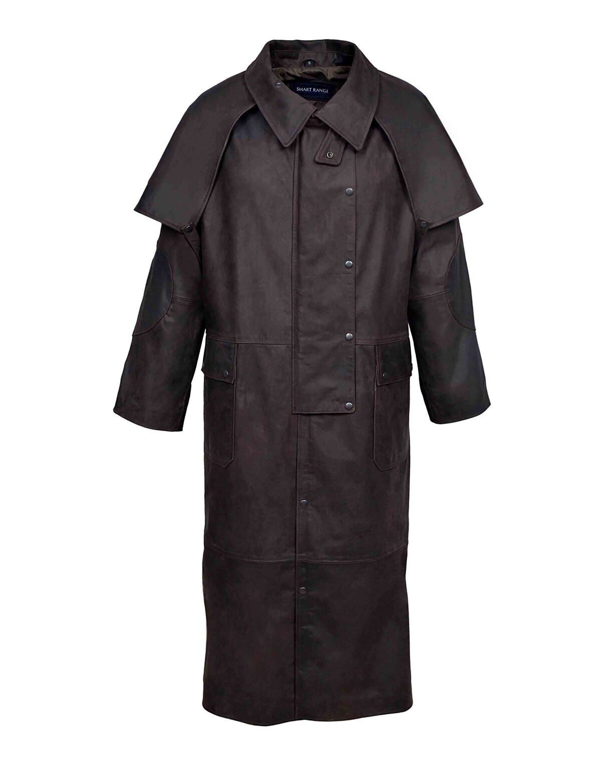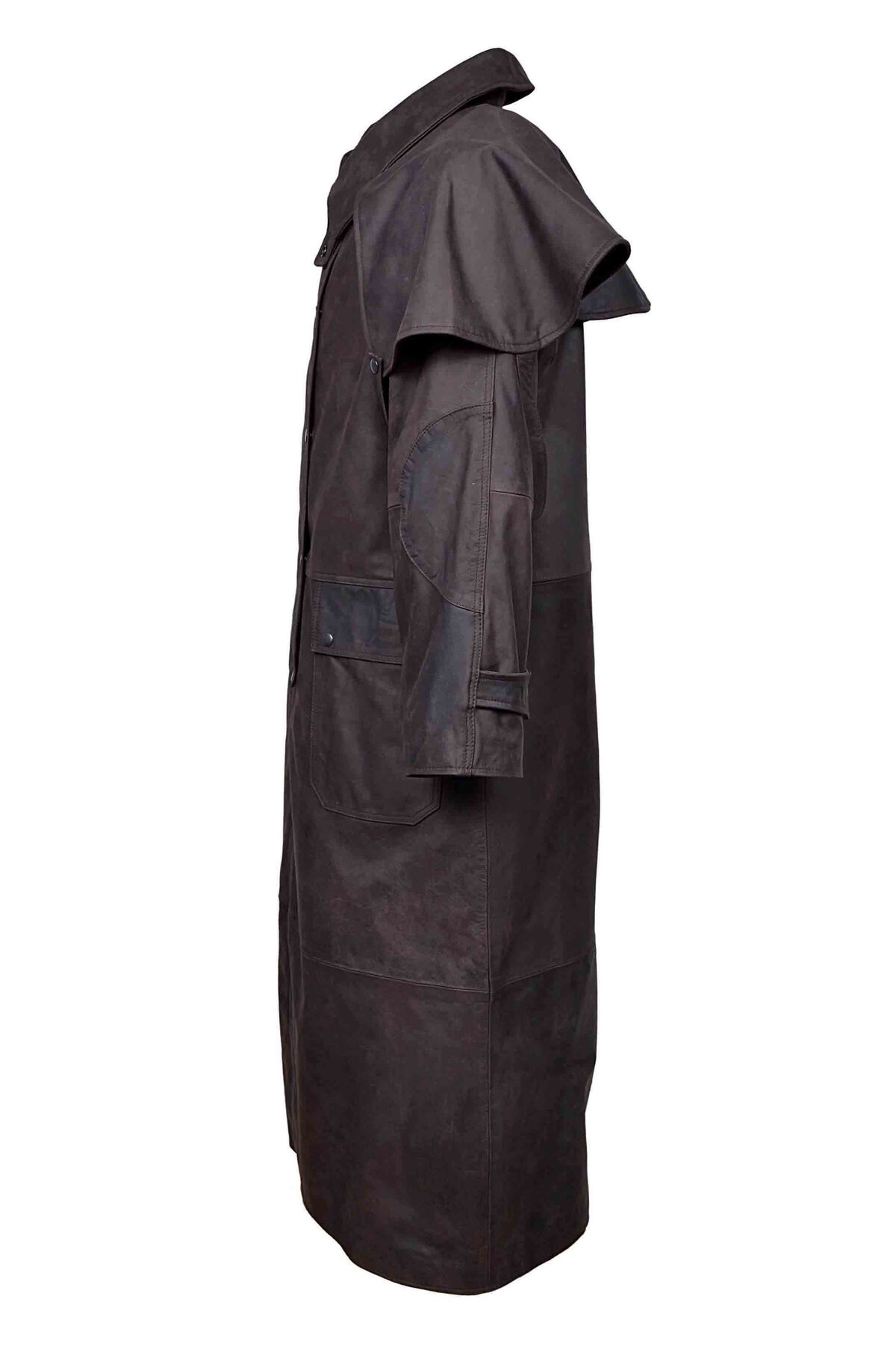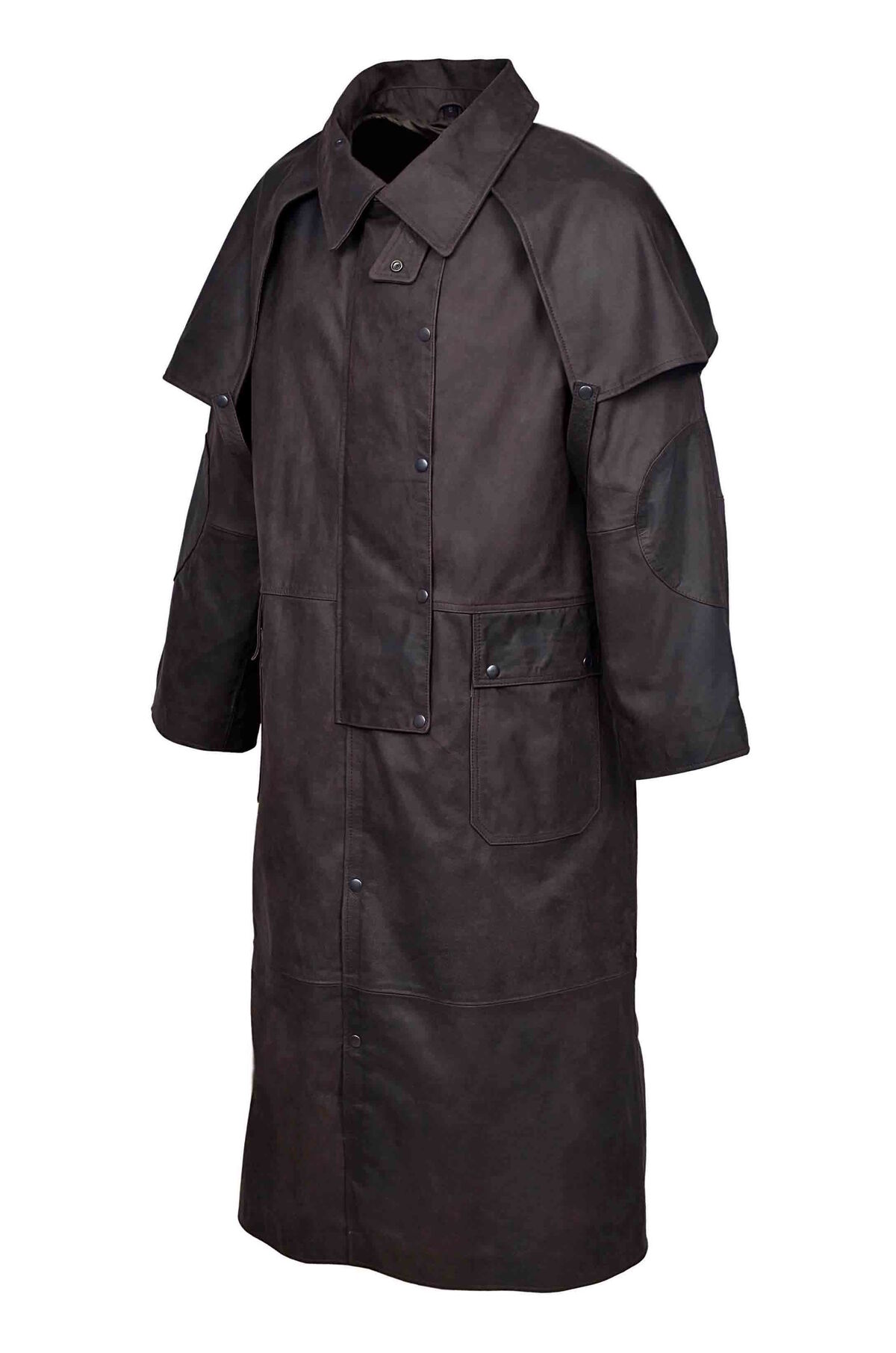 Associez ce manteau à un pantalon sombre et des bottines plateformes pour un style apocalyptique, steampunk ou dark western.