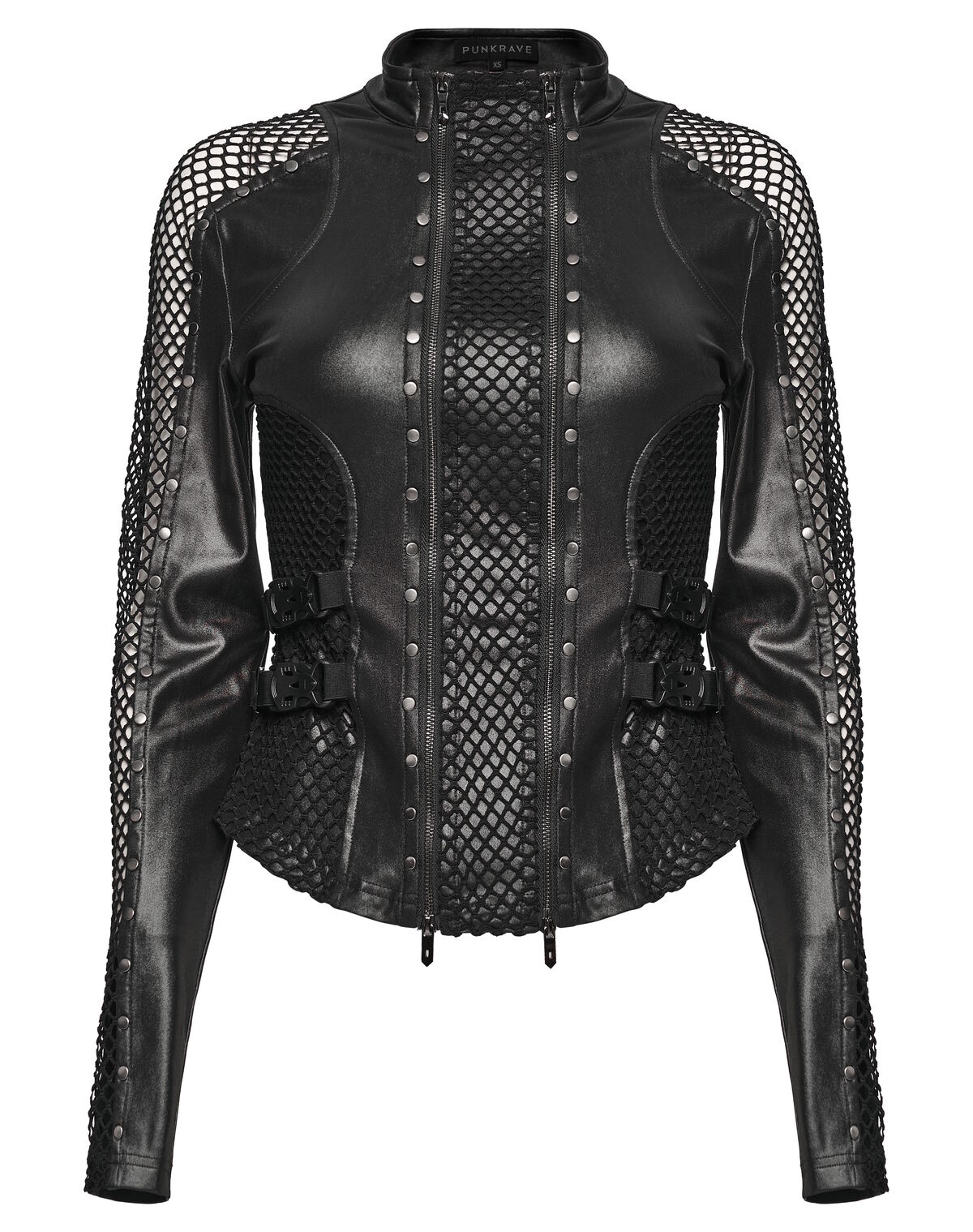 Le Haut Nébula Noire Punk Rave est une pièce centrale de l’esthétique cyberpunk / techwear. Pensé comme un vêtement fonctionnel et visuel, il associe des panneaux effet cuir à une résille technique qui laisse respirer le corps tout en renforçant l’impact graphique.