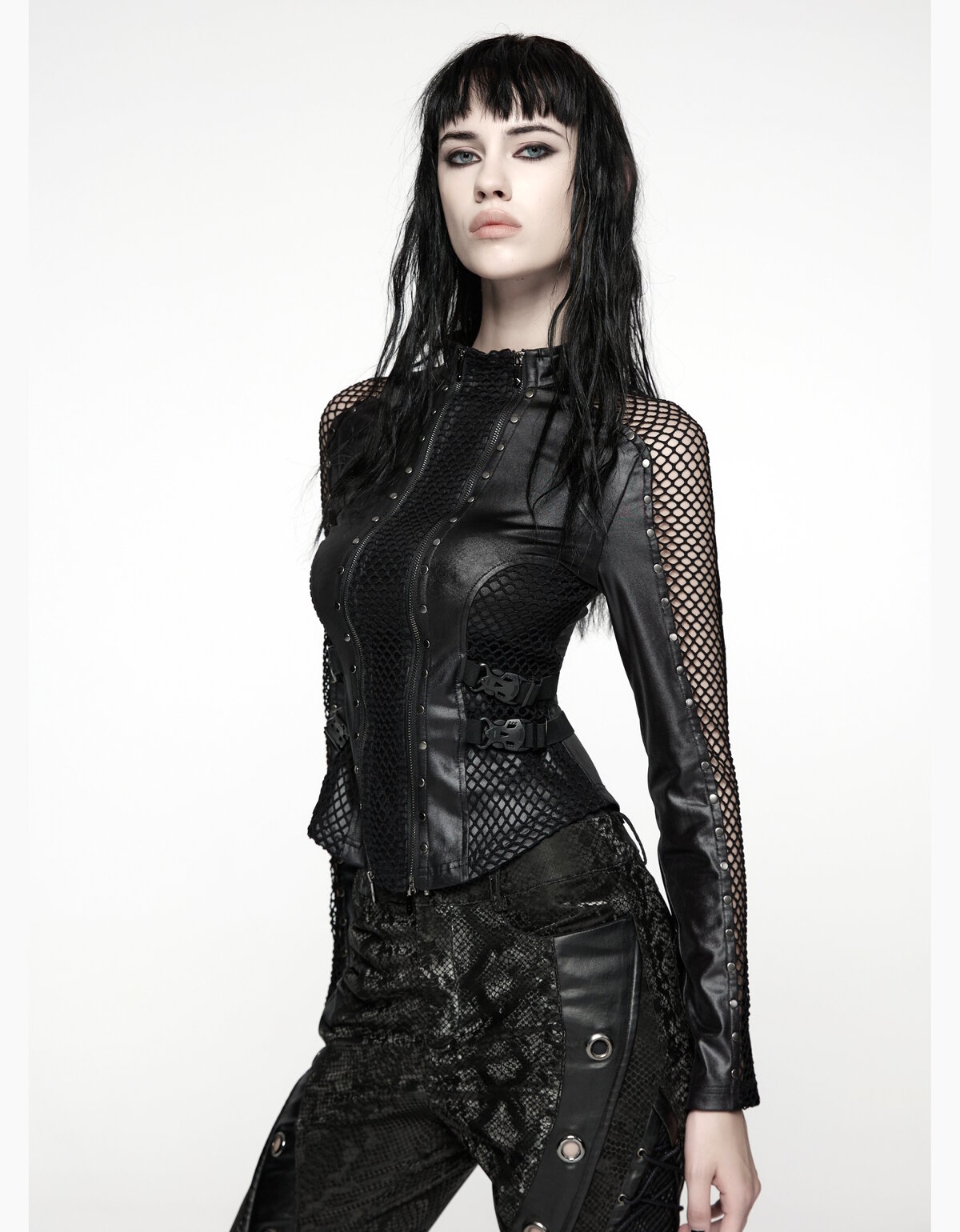 Les hauts gothiques à manches longues sont idéals pour composer des tenues élégantes, mystérieuses et visuellement fortes. Chez Discobole, nous vous proposons une gamme riche en textures et en styles : tops en dentelle, manches tulle, manches bouffantes, tops lacés, ou encore manches bardées de harnais et d’oeillets.