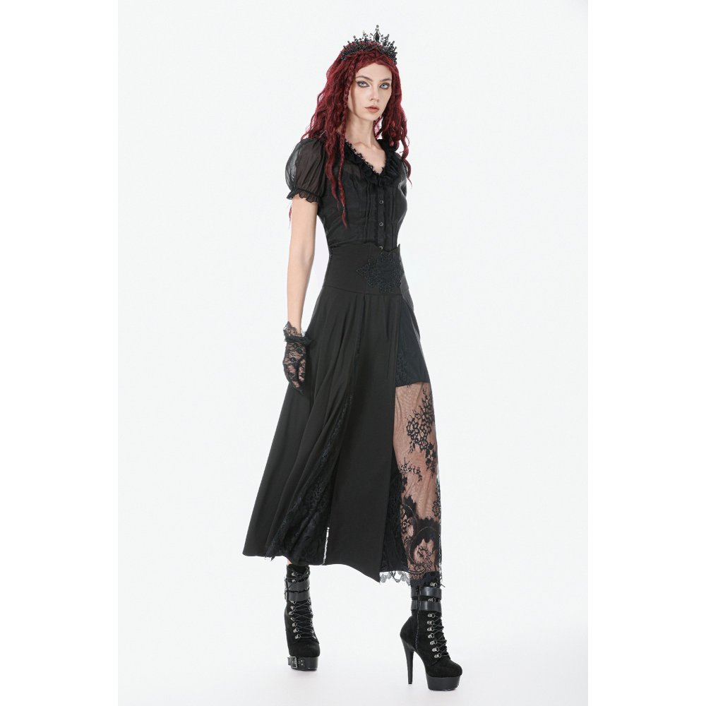 Le contraste entre opacité et transparence donne à cette jupe une aura mystérieuse, parfaite pour un look gothique romantique, une tenue cérémonielle ou une silhouette dark élégante.
