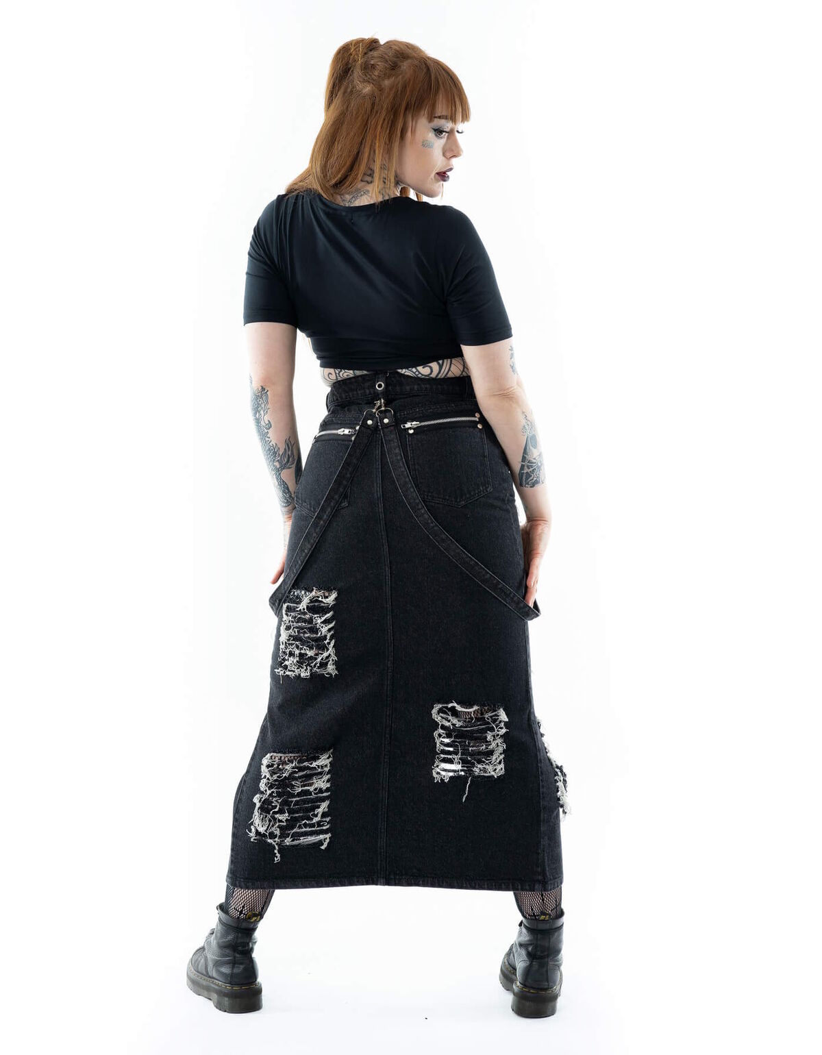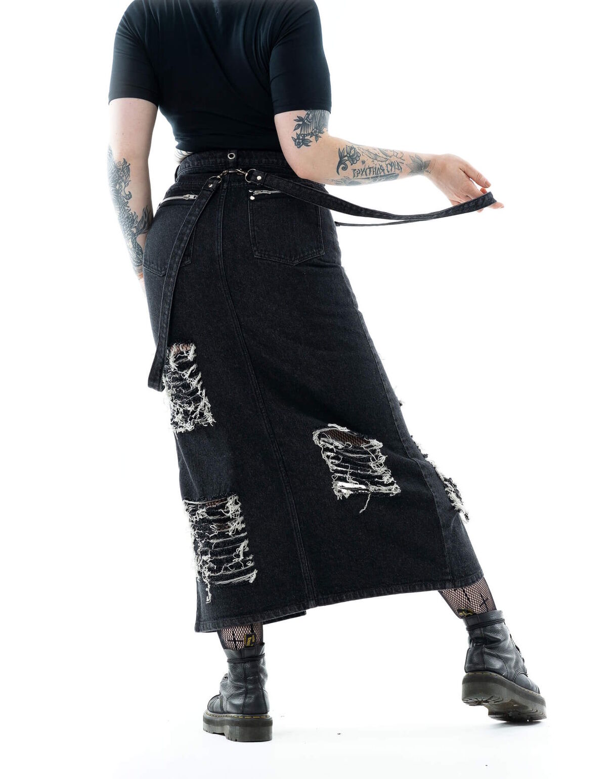 La Runa Skirt de Vixxsin revisite la jupe longue darkwear avec une esthétique brutale et ultra tendance.