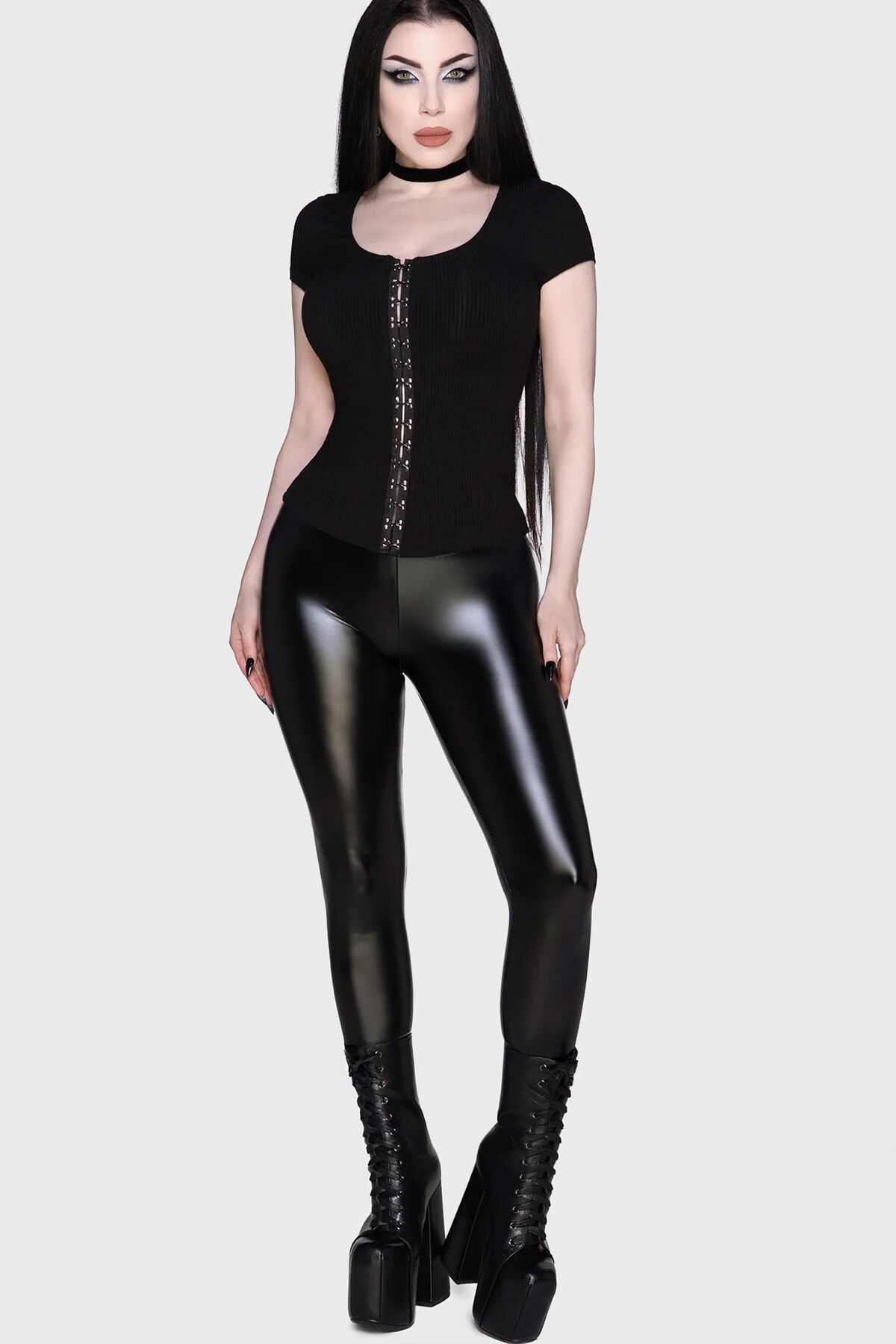Leggings noirs gothiques à détails lacés, zippés ou imprimés occultes,