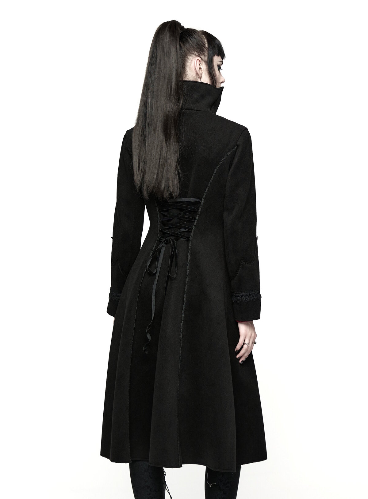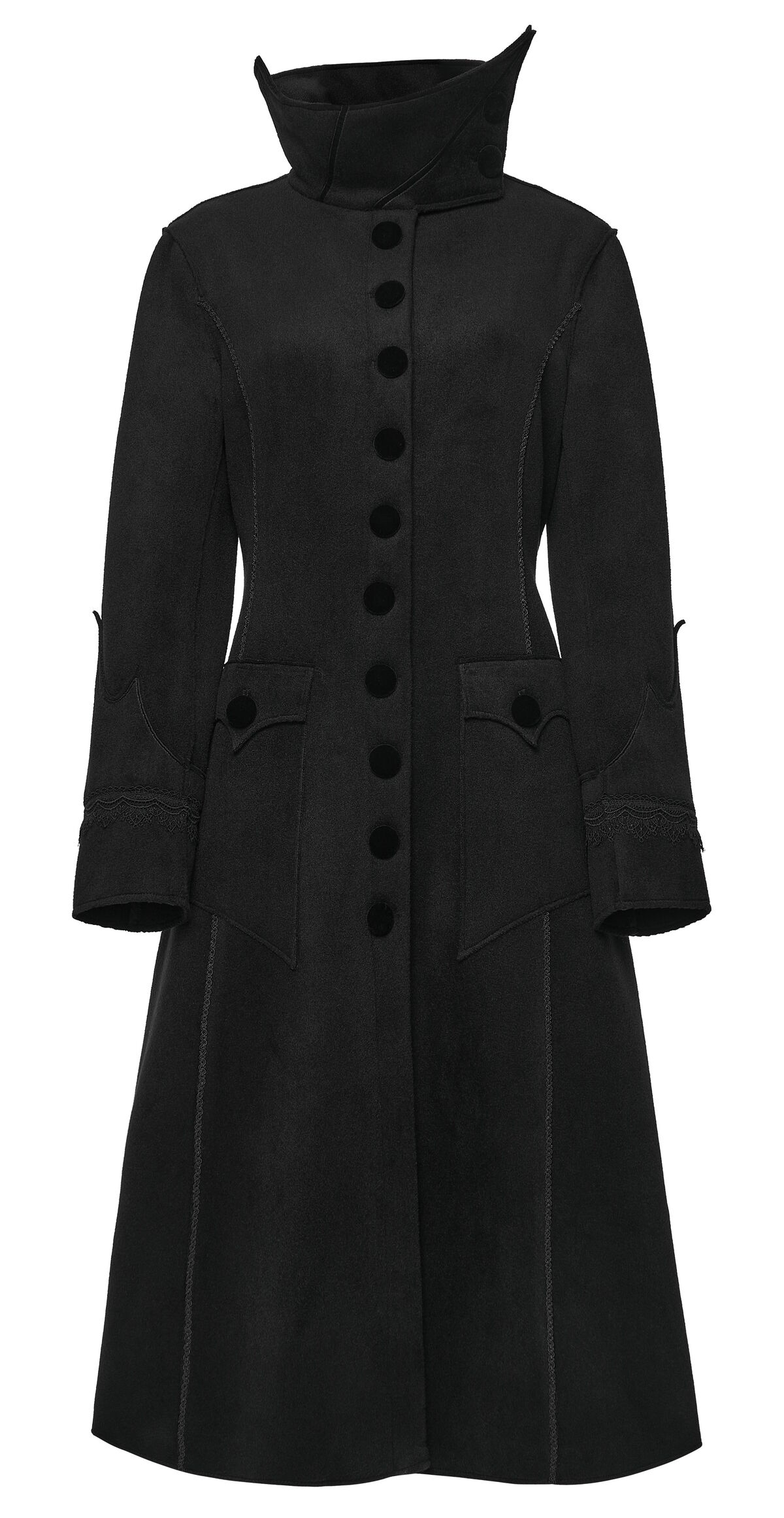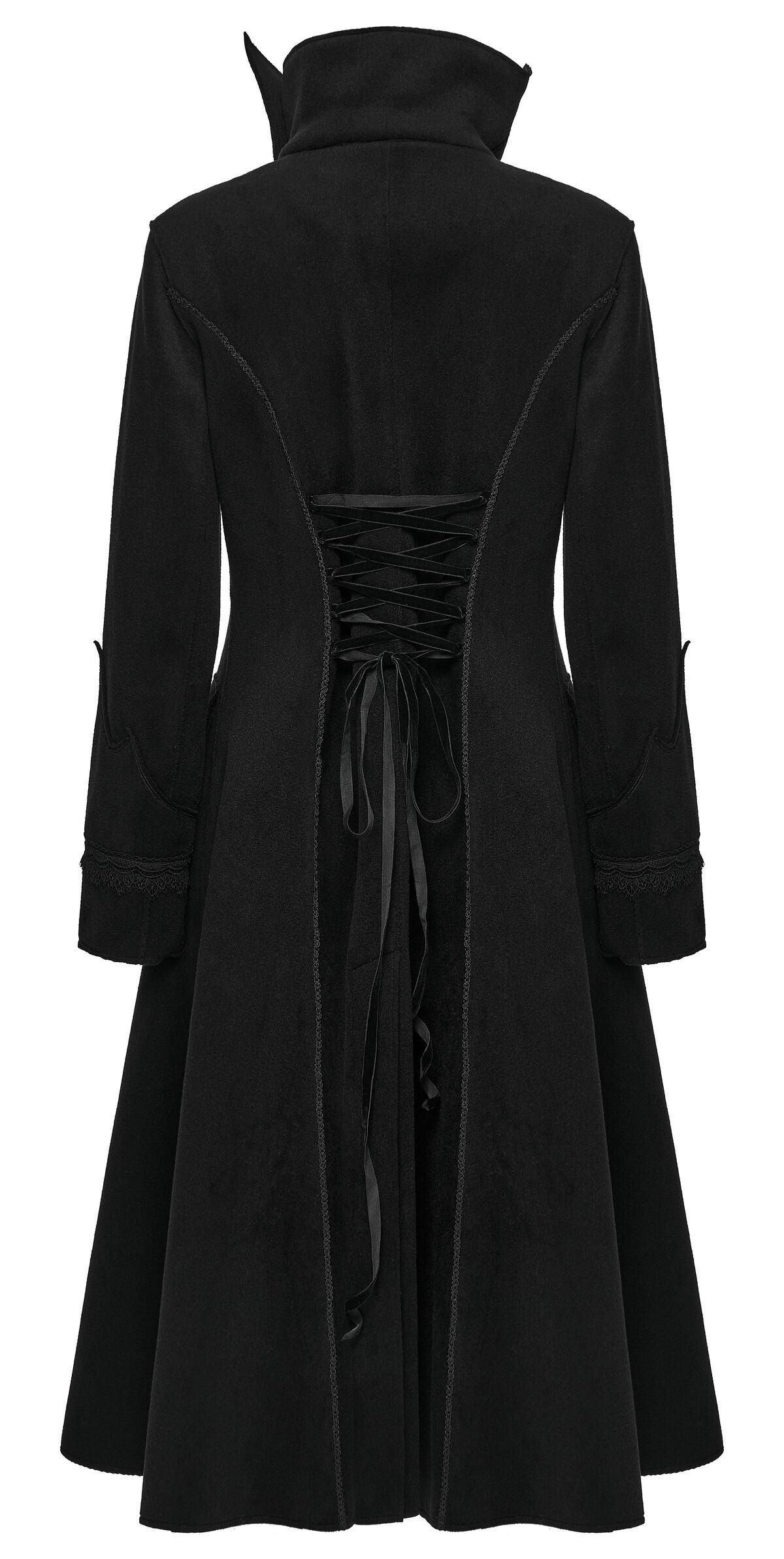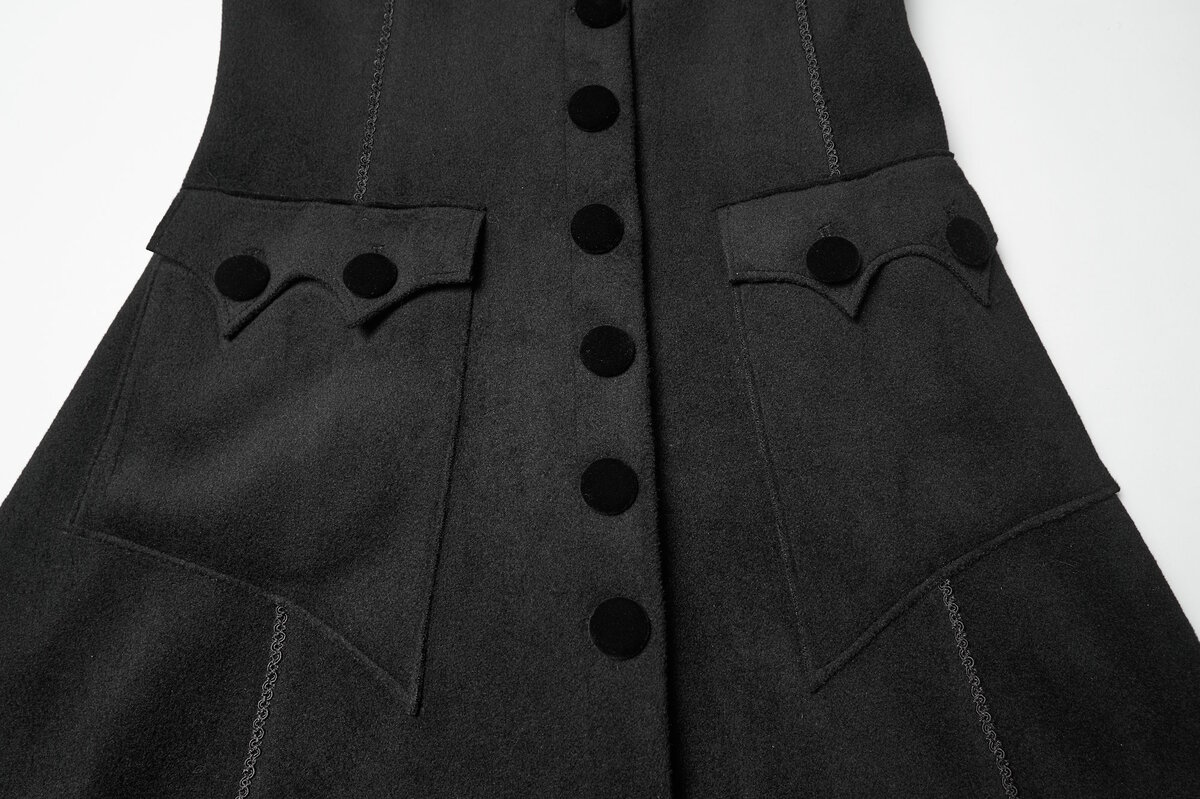 Son tombé long et net allonge la silhouette tout en protégeant du froid. Idéal pour un look victorien sombre, romantique ou darkwear premium.