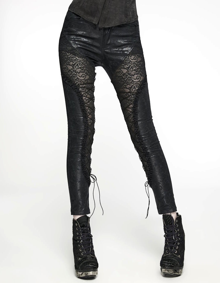 • Pantalons gothiques noirs aux finitions corsetées, zippées ou lacées,