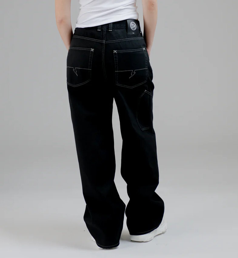 Un jean unisexe, polyvalent, taillé pour les adeptes du dark streetwear, du punk moderne ou du style goth industriel.
