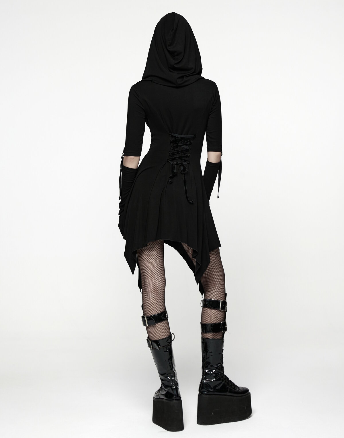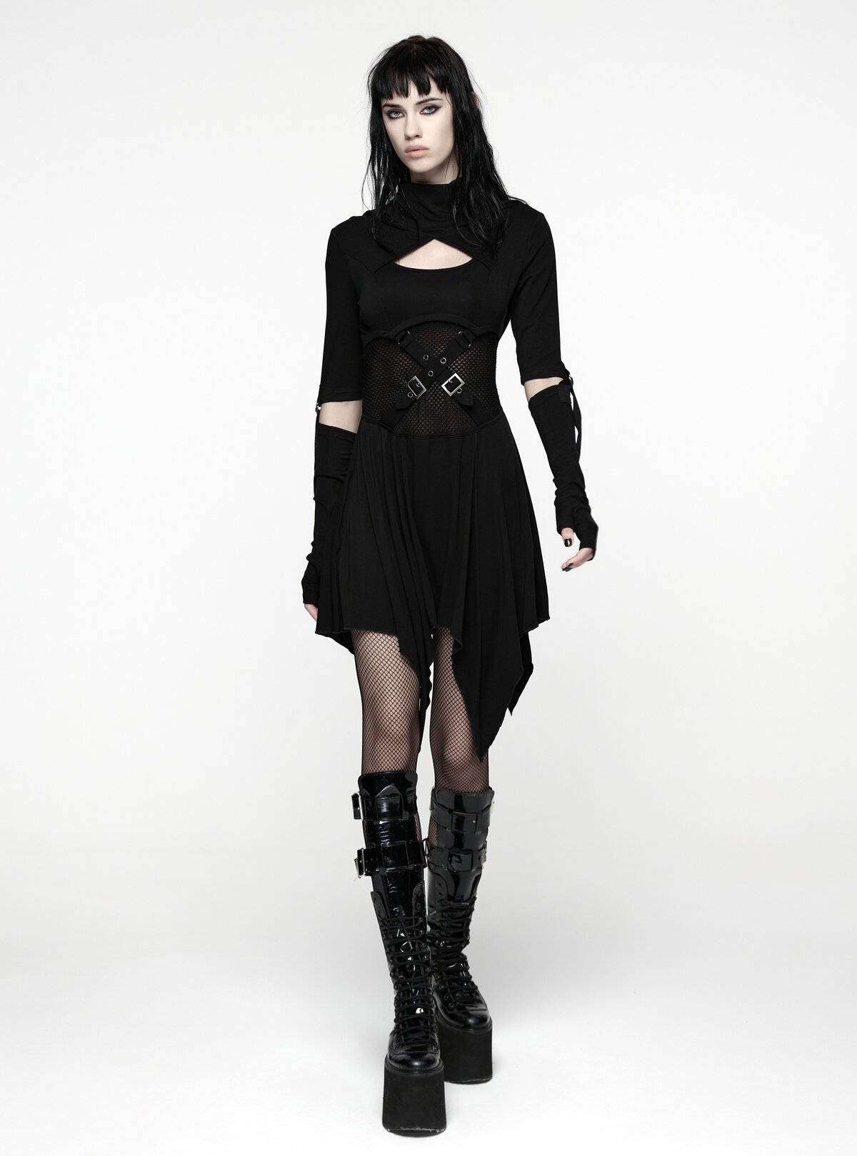 Robes courtes darkwear aux coupes asymétriques ou lacées,