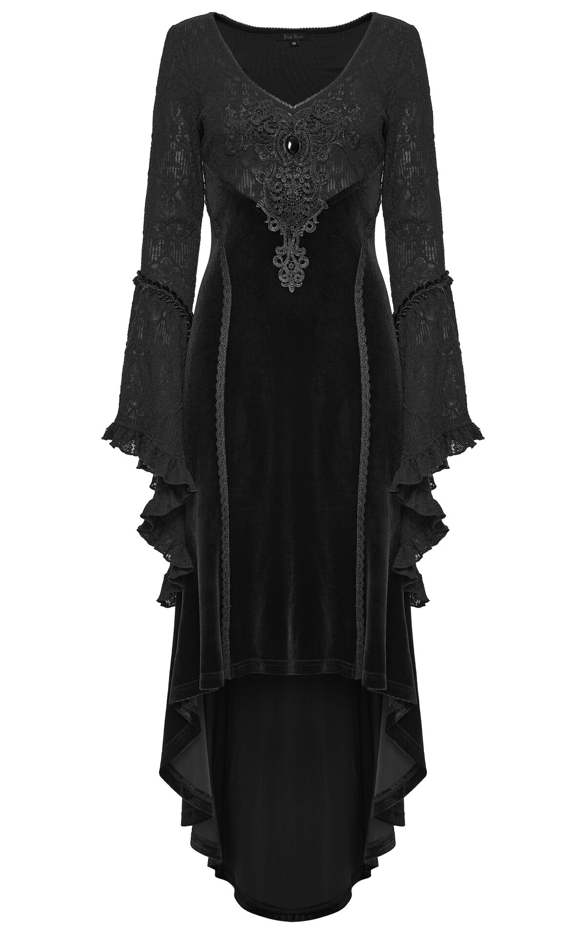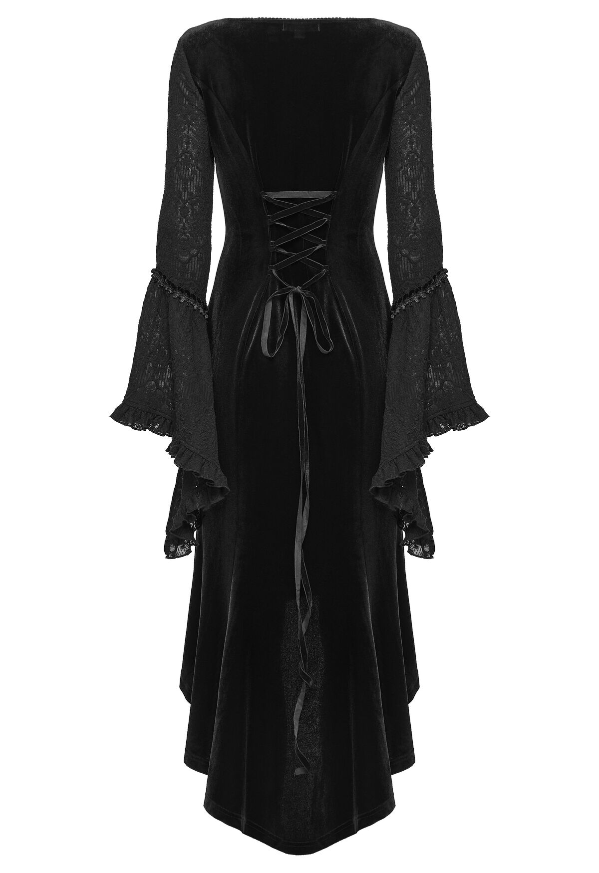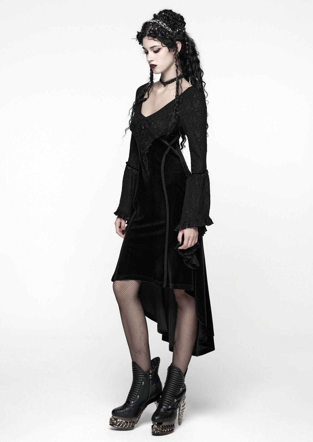 La Robe Velours Nocturne de Punk Rave incarne une vision intemporelle du gothique romantique. Son velours noir capte la lumière avec subtilité, tandis que la dentelle et les manches évasées évoquent les silhouettes victoriennes et les bals funèbres d’un autre temps.