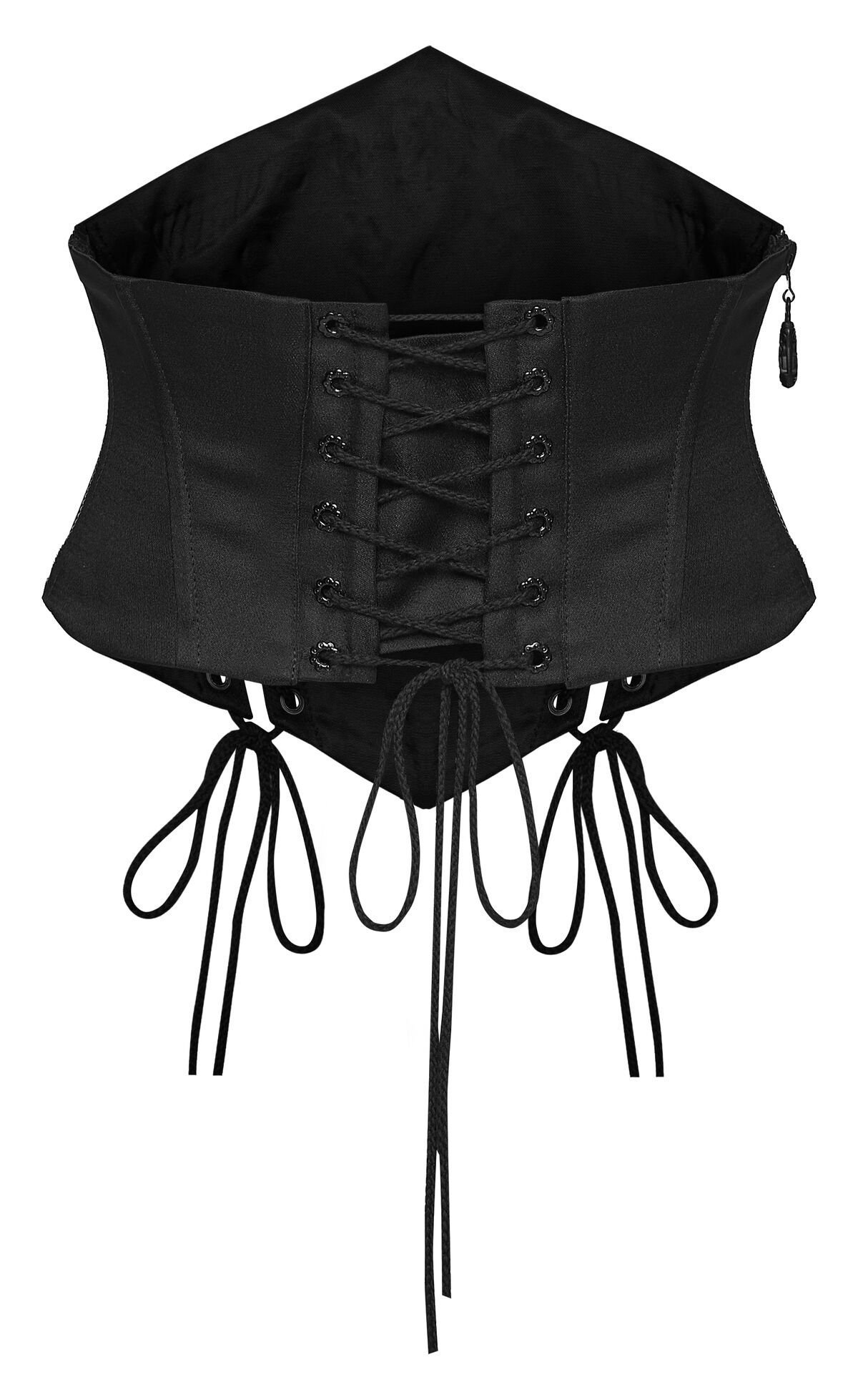 Les laçages latéraux permettent d’ajuster la taille avec précision, offrant un maintien structuré et une silhouette marquée.