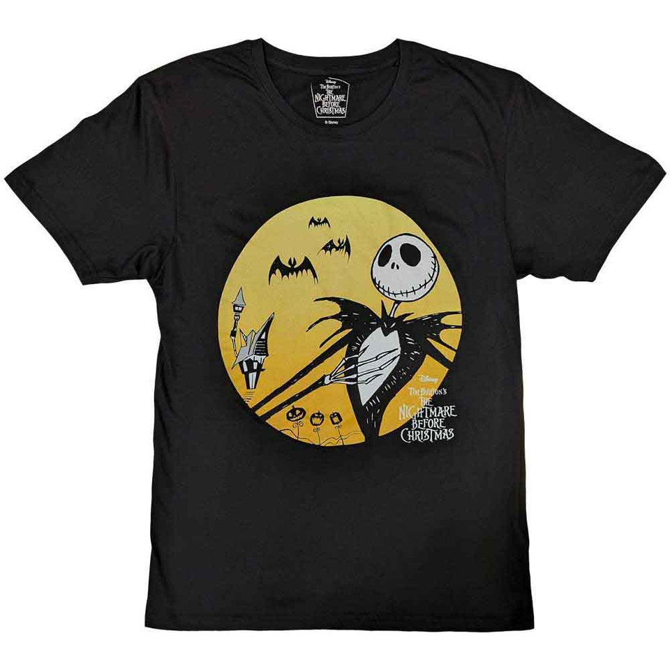 Ce t-shirt unisexe capture la magie sombre et minimaliste de The Nightmare Before Christmas. Au centre, une grande lune jaune stylisée sert d’écrin à Jack Skellington, représenté dans un style graphique proche des croquis originaux de Tim Burton. Autour de lui, des chauves-souris et des silhouettes d’Halloween renforcent l’ambiance nocturne du visuel.