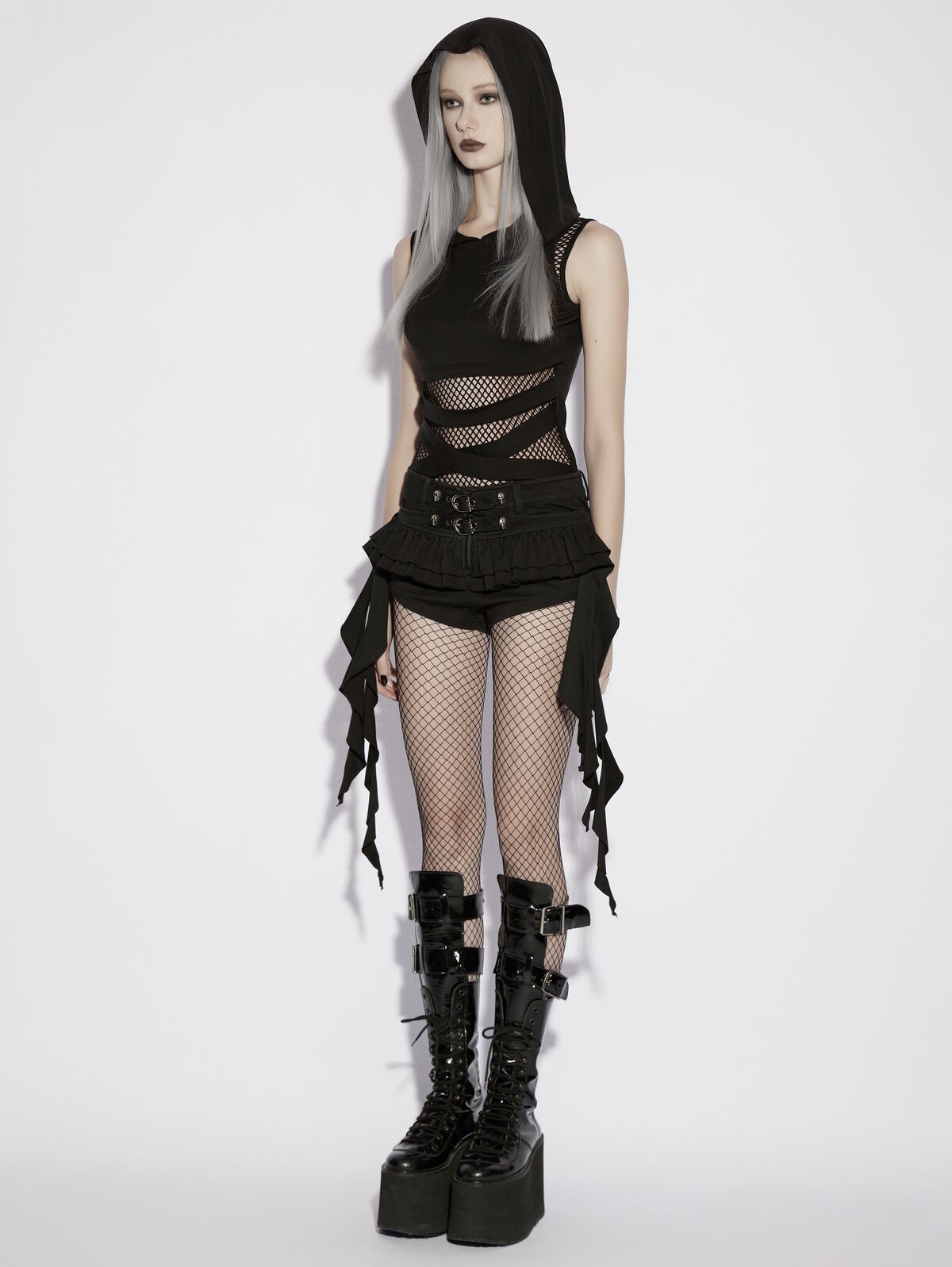 Le top gothique Wasteland Veil est une pièce hybride, entre protection et exposition.