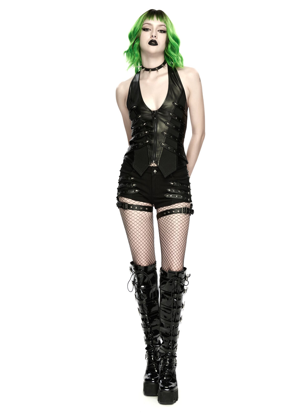 Associe-le avec un short clouté + résille pour un look club cyberpunk immédiat.