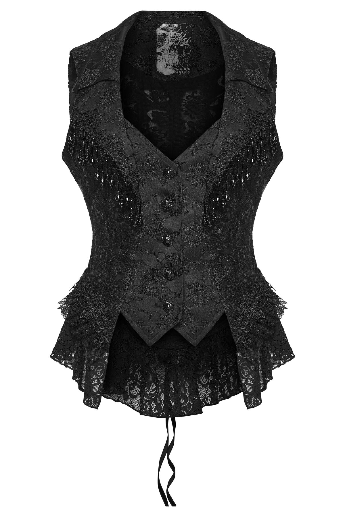 Moins rigide qu’un corset, mais tout aussi structurant, ce vest est idéal pour composer des silhouettes gothiques modernes, entre élégance victorienne et esprit dark contemporain.