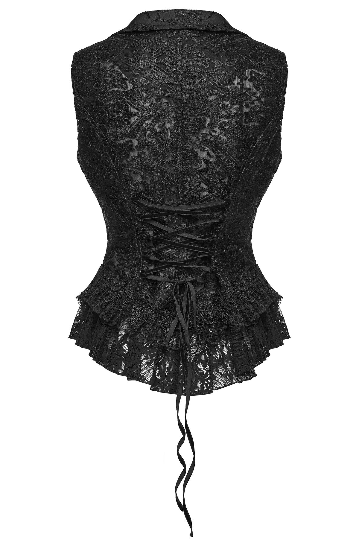 Gilets darkwear aux détails corsetés, chaînes ou dentelles,