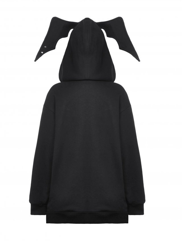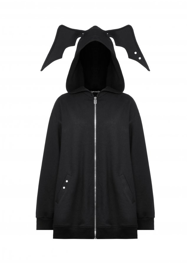 Sa coupe ample et son coton épais créent une armure de confort, tandis que la capuche aux ailes de chauve-souris transforme chaque apparition en rituel nocturne.