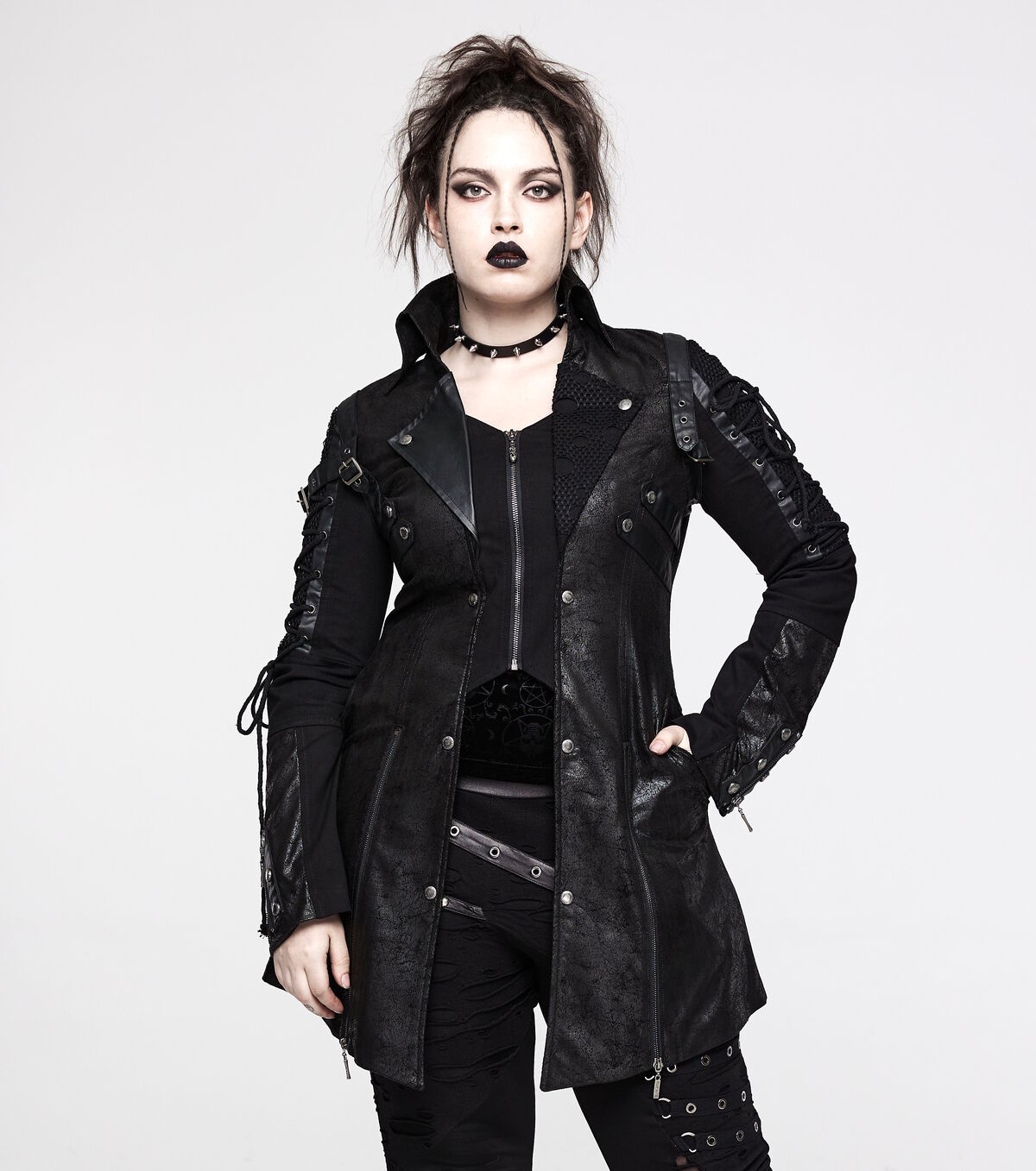 La veste Black Funerale de Punk Rave est une pièce signature, pensée pour une allure théâtrale et imposante.