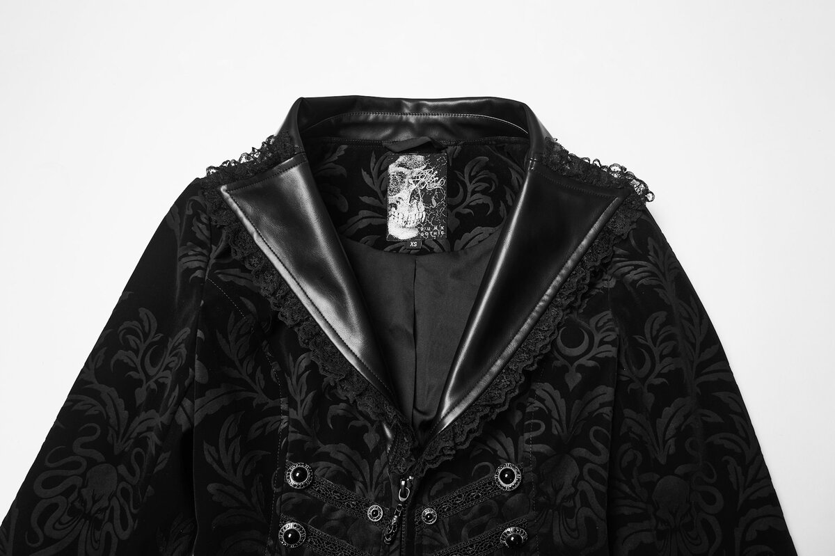 Le tissu velous noir aux motifs baroques ajoute une profondeur subtile et luxueuse, idéale pour les événements, cérémonies, soirées gothiques ou looks quotidiens sophistiqués.