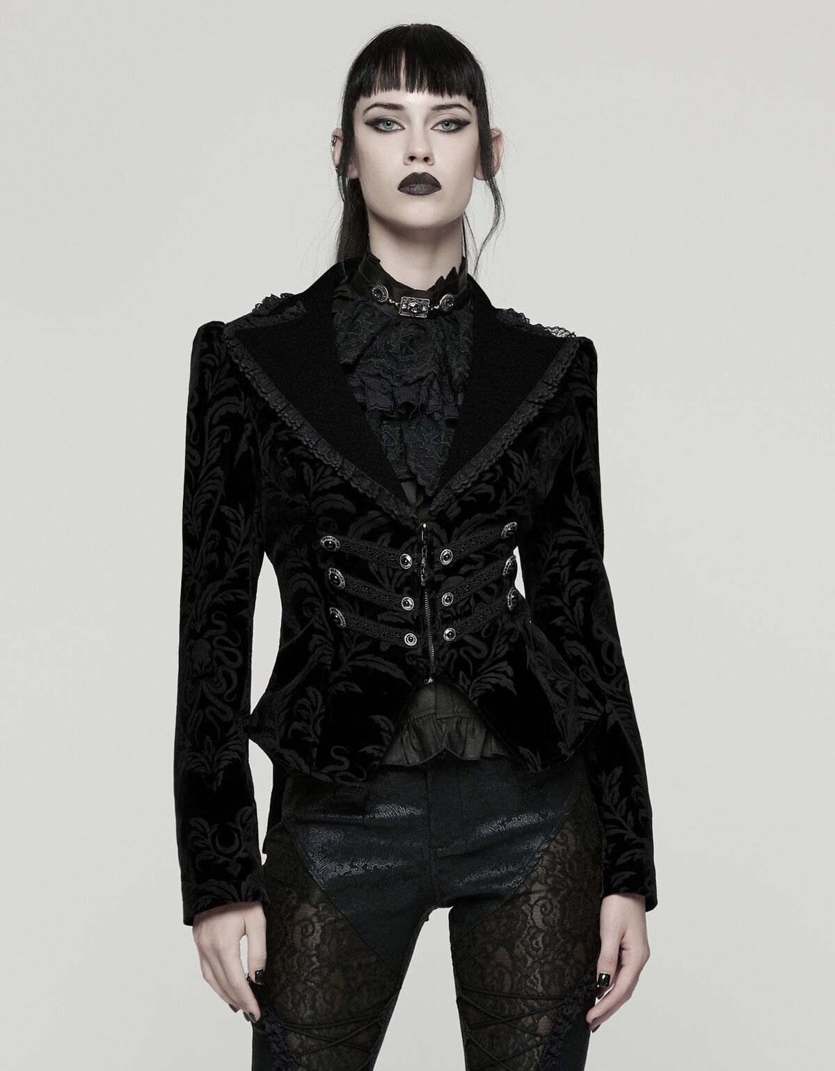Enveloppez-vous d’élégance sombre et affirmez votre style avec notre sélection de vestes et gilets gothiques pour femmes.