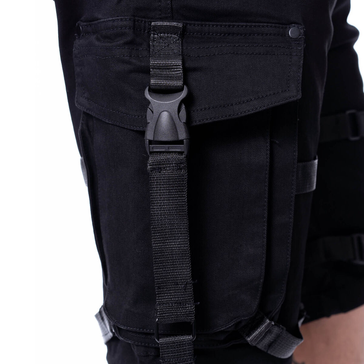 Ses sangles ajustables, ses poches cargo et ses détails techniques en font une pièce forte, inspirée des univers industriels et cyberpunk.