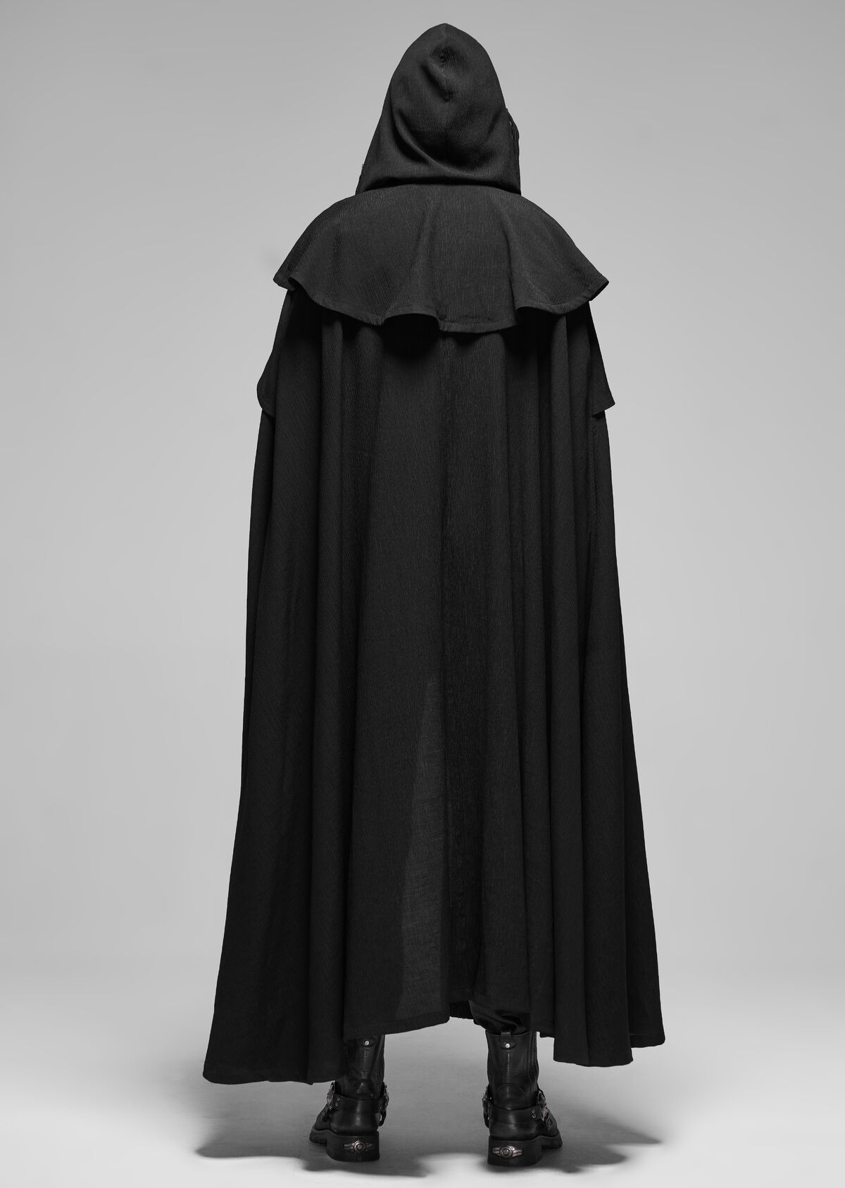 Taillée dans un tissu léger et fluide, elle enveloppe le corps d’un voile sombre en mouvement, parfait pour les nuits d’été ou les entre-saisons. Sa capuche surdimensionnée plonge le regard dans l’ombre, renforçant cette aura mystérieuse et intimidante.