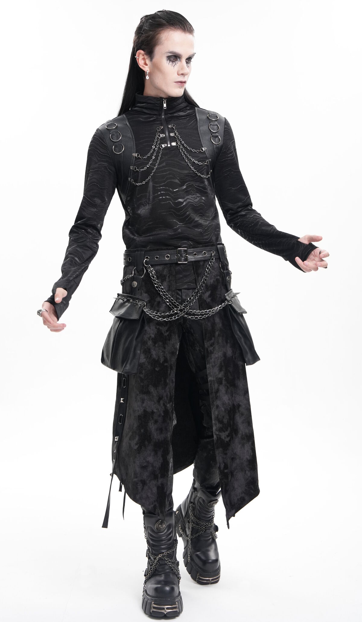 Explorez l’univers ténébreux de Discobole à travers notre sélection exclusive de vêtements gothiques pour hommes. Du manteau long noir aux vestes d’inspiration victorienne, en passant par les chemises à jabot, pantalons ajustés, gilets steampunk ou tops cyber-goth, chaque pièce incarne une allure sombre, élégante et singulière.