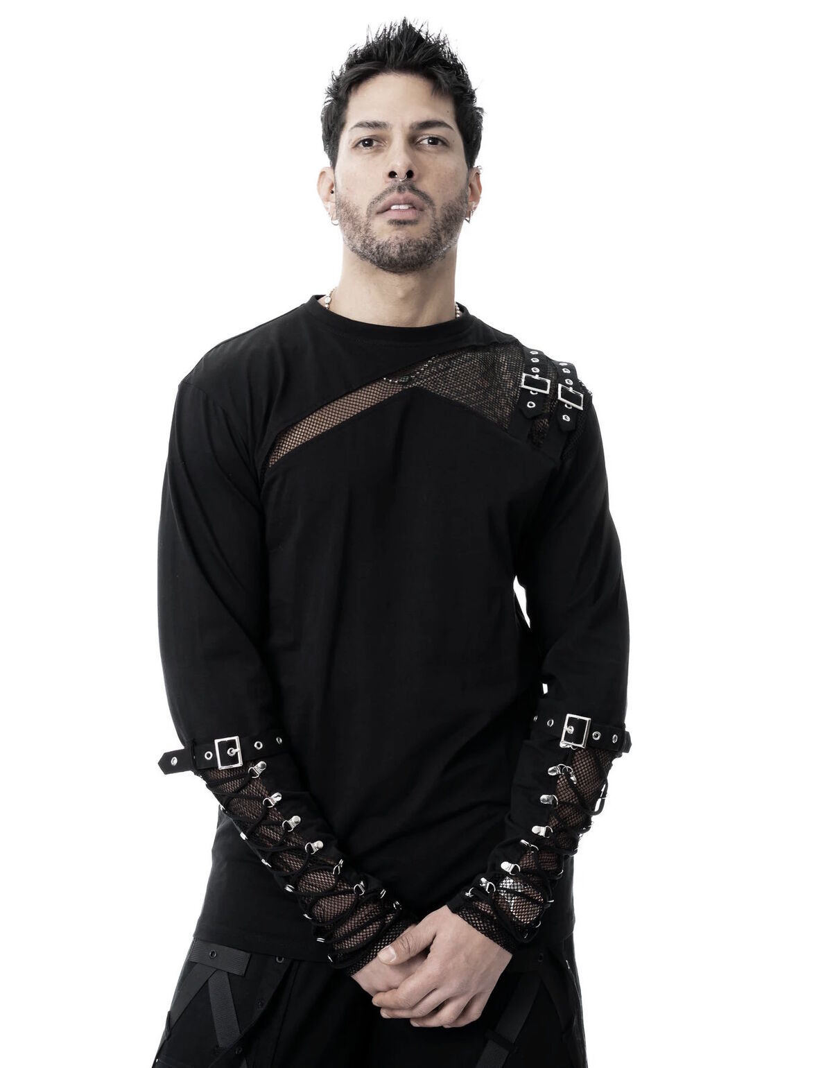 Pensé pour être porté seul ou sous une veste, Silas se glisse aussi bien dans un univers goth trad, industrial, que dark streetwear.