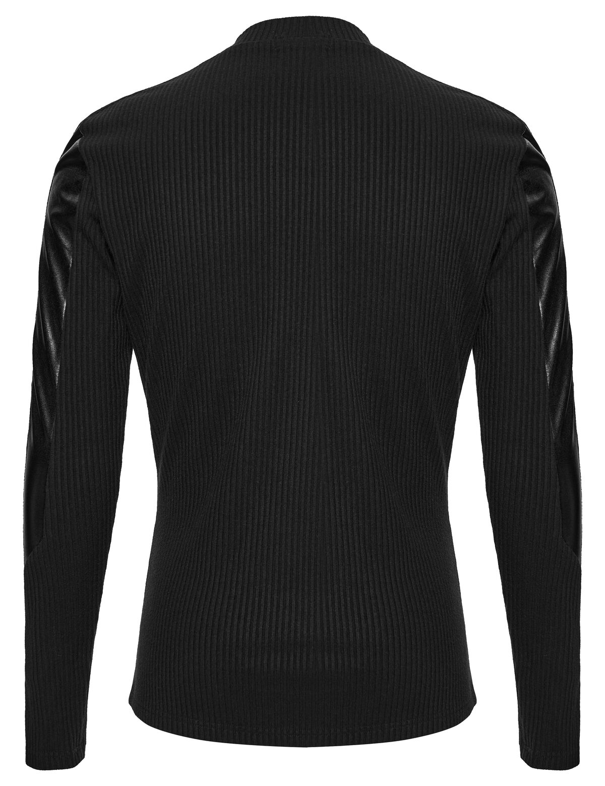 Sa base en maille côtelée épouse le corps avec précision, tandis que les empiècements effet cuir viennent structurer la silhouette avec caractère.