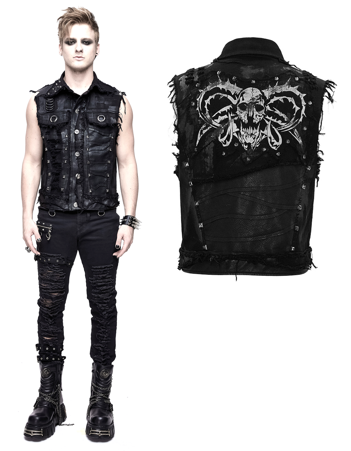 Affirme ton style avec cete veste gothique hors du commun, conçue pour les véritables adeptes du look métal sombre et brutal. Chaque détail de ce modèle a été pensé pour exprimer une allure rebelle et destructurée.