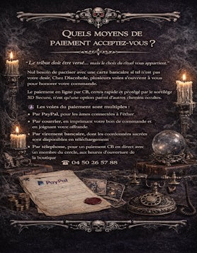 - Par téléphone, pour un paiement CB en direct avec un membre du cercle, aux heures d’ouverture de la boutique